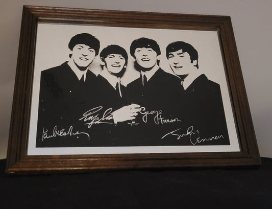 The Beatles Bild 22,5x17,5cm – Gerahmte Illustration mit Spiegelbild/Signaturen (Druck)
